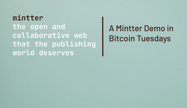 Historia La revolución de la Web comenzó en 1989 gracias a su creador Tim Berners-Lee. Por primera vez, la Web permitía la publicación descentralizada de contenido, sin pedir permiso a una autoridad central y con acceso al mundo entero. Pero la Web nace con dos problemas. Por un lado sus limitaciones técnicas como sistema de hipertexto impide la colaboración descentralizada, enviando el progreso humano a la esclavitud de las Big Tech de Silicon Valley. Por otro lado, la falta de un sistema de micropagos embebido en el navegador impide cobrar en el navegador. Este problema fue acuñado por Marc Andreessen, creador de Netscape, como el pecado original de la Web porque impidió la generación de modelos de negocio distintos a la publicidad. Esto nos ha llevado a la economía de la atención donde el incentivo es el anunciante y no la colaboración. En los años 60, los grandes visionarios del hypertexto y de la interaccion humano-computadora, Doug Engelbart y Ted Nelson, se imaginaron sistemas descentralizados de colaboración, más avanzados que los que usamos actualmente. Sistemas como Xanadu de Ted Nelson permitían la reutilización de contenido, manteniendo las autorías y royalties, gracias al uso de sistemas de almacenamiento y de micropagos descentralizados. Por fin, 60 anos después de la concepción de Xanadu, la vision de Ted es posible gracias a Bitcoin y a tecnologías como IPFS y Nostr. Meetup de hace un año Hace un año, Gabo y Julio revisaron como IPFS y Lightning network pueden crear una web descentralizada; cómo funciona IPFS, sus diferencias con Nostr y por qué pensamos que son tecnologías complementarias. Introducción a Mintter En este Meetup Gabo y Julio entraran a fondo a explicar la herramienta descentralizada: El evento se hará en español con algunos bitcoiners presentes que puedan ayudar con la traducción al inglés.
