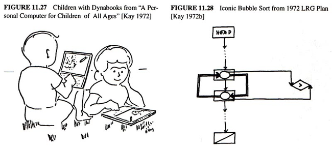 I'm writing this introduction in an airplane at 35,000 feet. On my lap is a five pound notebook computer—1992's "Interim Dynabook"—by the end of the year it sold for under $700. It has a flat, crisp, high-resolution bitmap screen, overlapping windows, icons, a pointing device, considerable storage and computing capacity, and its best software is object-oriented. It has advanced networking built-in and there are already options for wireless networking. Smalltalk runs on this system, and is one of the main systems I use for my current work with children. In some ways this is more than a Dynabook (quantitatively), and some ways not quite there yet (qualitatively). All in all, pretty much what was in mind during the late sixties.
