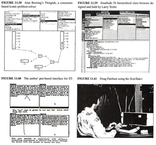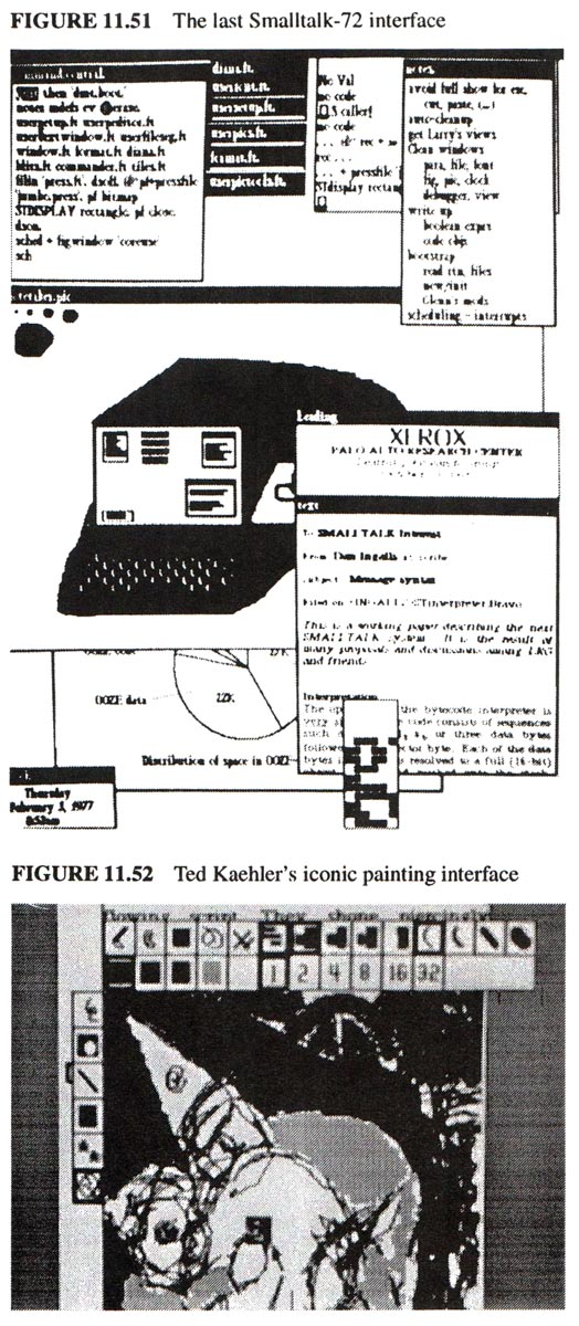 I have been asked by several of the reviewers to say more about the development of the "Smalltalk-style" overlapping window user interface since there are now more than 20 million computers in the world that use its descendants. A decent history would be as long as this chapter, and none has been written so far. There is a summary of some of the ideas in [Kay 89]—let me add a few more points.