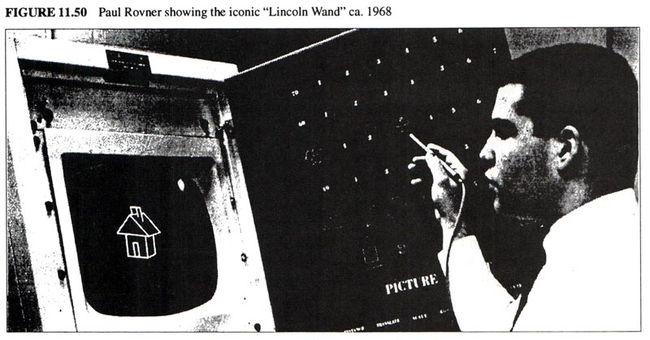 This was in early 1967, and while we were pondering the FLEX machine, Utah was visited by Doug Engelbart. A prophet of Biblical dimensions, he was very much one of the fathers of what on the FLEX machine I had started to call "personal computing." He actually traveled with his own 16mm projector with a remote control for starting and stopping it to show what was going on (people were not used to seeing and following cursors back then). His notion on the ARPA dream was that the destiny of oNLine Systems (NLS) was the "augmentation of human intellect" via an interactive vehicle navigating through "thought vectors in concept space." What his system could do then—even by today's standards—was incredible. Not just hypertext, but graphics, multiple panes, efficient navigation and command input, interactive collaborative work, etc. An entire conceptual world and world view [Engelbart 68]. The impact of this vision was to produce in the minds of those who were "eager to be augmented" a compelling metaphor of what interactive computing should be like, and I immediately adopted many of the ideas for the FLEX machine.