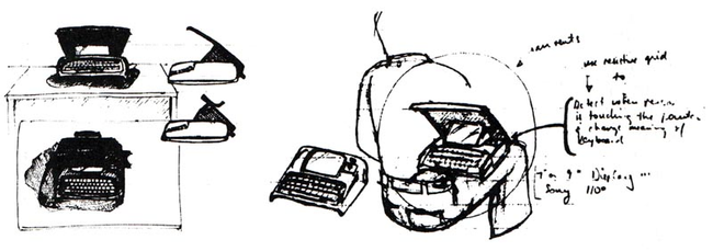 The NoteTaker was to be a "laptop" that could be built in a few years using the (almost) available 16K RAMS (a vast improvement over the 1K RAMS that the ALTO employed). A laptop couldn't use a mouse (which I hated anyway) and a tablet seemed awkward (not a lot of room and the stylus could flop out of reach when let go), so I came up with an embedded pointing device I called a "tabmouse." It was a relative pointer and had an up sensor so it could be stroked like a mouse and would also stay where you left it, but it felt like a stylus and used a pantograph mechanism that eliminated the annoying hysteresis bias in the x and y directions that made it hard to use a mouse as a pen. I planned to use a multiprocessor architecture of slow but highly integrated chips as originally specified for the Dynabook and wanted a new bytecoded interpreter for a friendlier and simpler system than Smalltalk-72.