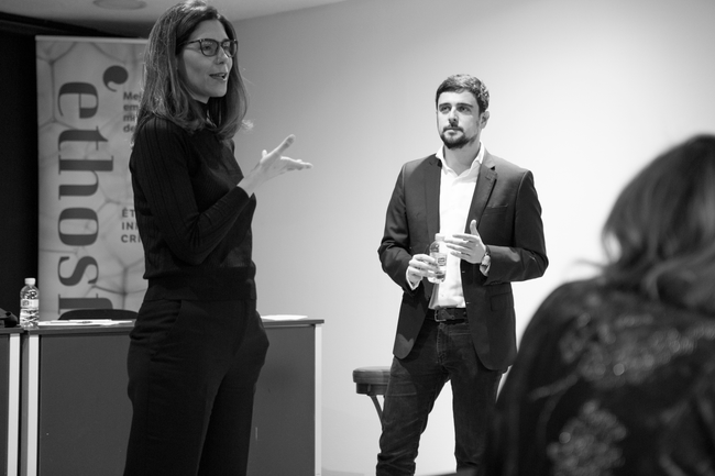Posteriormente, la directora de Ethosfera y doctora en Derecho Constitucional Elena Herrero-Beaumont dirigió el siguiente conversatorio exponiendo la redefinición del capitalismo y su integración en un horizonte moral concreto. Durante la sesión abordamos la transición hacia un capitalismo de stakeholders y la necesidad de orientar la iniciativa empresarial hacia un compromiso público que trascienda el estricto propósito de lucro. Así, concluimos que el impacto social de la actividad privada debe acompasarse con nuevas formas de exigencia, incluso mucho más allá de los criterios ESG o el cumplimiento. La tercera sesión se abrió a las políticas públicas, atendiendo a los fondos de recuperación de la Unión Europea NextGen. Para ello, María Rosa Aldea Busquets, Directora General Adjunta de la Dirección General de Presupuestos y Contable de la Comisión Europea, realizó una presentación detallada sobre las líneas maestras de estos fondos y su reparto, desde la perspectiva europea. Tras lo cual, Santiago Fernández Muñoz, Jefe de la Unidad de Seguimiento del Plan de Recuperación, Transformación y Resiliencia en la Secretaría General de Asuntos Económicos y G20 del Gabinete de la Presidencia del Gobierno de España, expuso el papel del gobierno español en el diseño de dicho Plan y el estado actual de su aplicación concreta en España. La deliberación posterior se concentró en las vías y posibilidades de optimización de estos fondos desde un punto de vista ético, con especial atención al análisis y alineamiento de medios y fines.