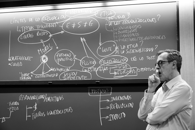 Uno de los puntos más debatidos fue el fundamento ético, estratégico o normativo de las políticas empresariales de sostenibilidad. Algunos participantes sostuvieron que la sostenibilidad nace de impulsos morales y políticos, y no de la iniciativa espontánea del mundo corporativo. Desde esta perspectiva, su legitimidad se deriva del mandato democrático y de la presión social, más que de una convicción intrínseca de las empresas. Otros, en cambio, subrayaron que las empresas deben tener la libertad de actuar de forma responsable dentro de un marco legal claro, siendo el mercado —a través de consumidores e inversores— el principal regulador de sus conductas.