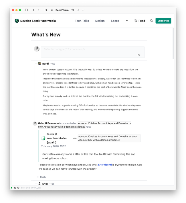 Seed Hypermedia supports human thought and collaborative work on the web through an extremely decentralized network for storage and permissions, designed for any knowledge community — from publishers and newspapers to universities, conferences, and creators. Read the organization of this knowledge repository first.