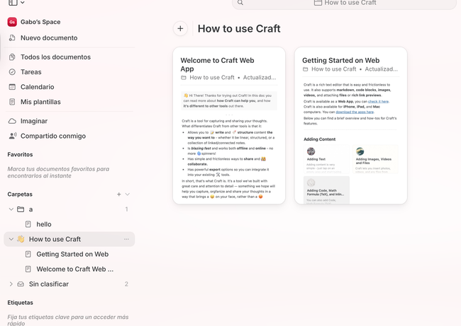 Craft has folders: